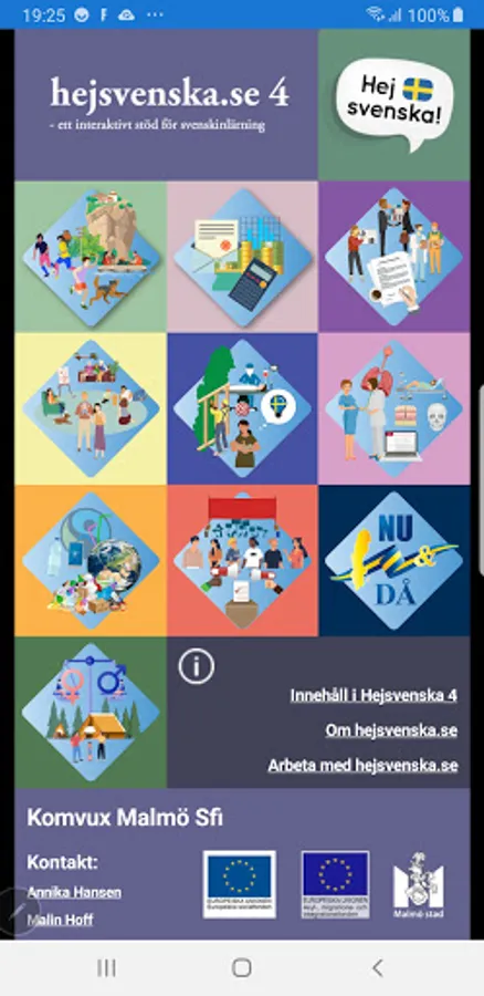 The app is mainly made for adult second language learners who also need literacy. First you train a vocabulary and then you work with the words containing sounds and letters. Then the words are practiced in everyday, useful phrases. With the support of the help function, the app can be used from the start of Swedish studies.