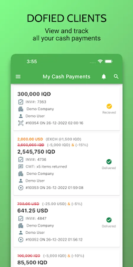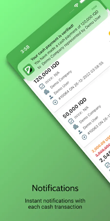 - Instant notifications for cash payments and unpaid invoices.