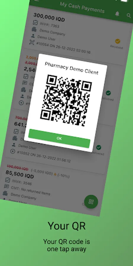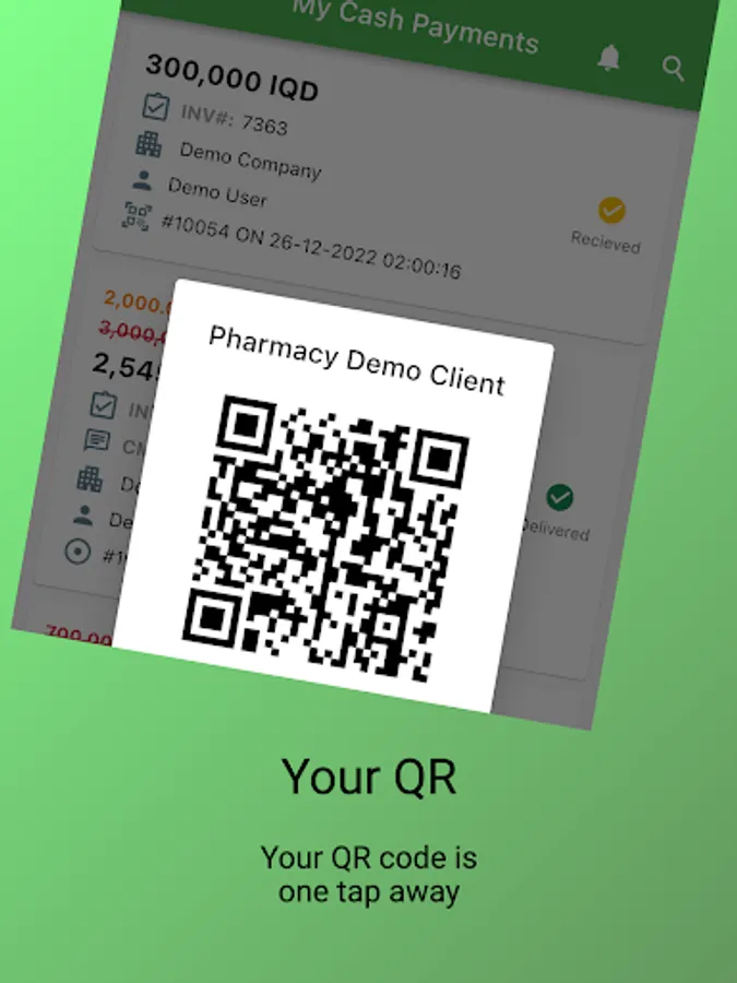 This app verifies the clients' phone number and grants them access to their cash payment history.