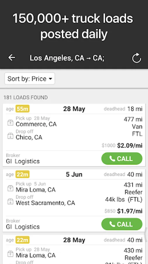 Carriers can just tap a button on one of our prepaid loads from direct shippers and instantly book a load, and the price you see is the price you get - no more games and back-and-forth negotiations.