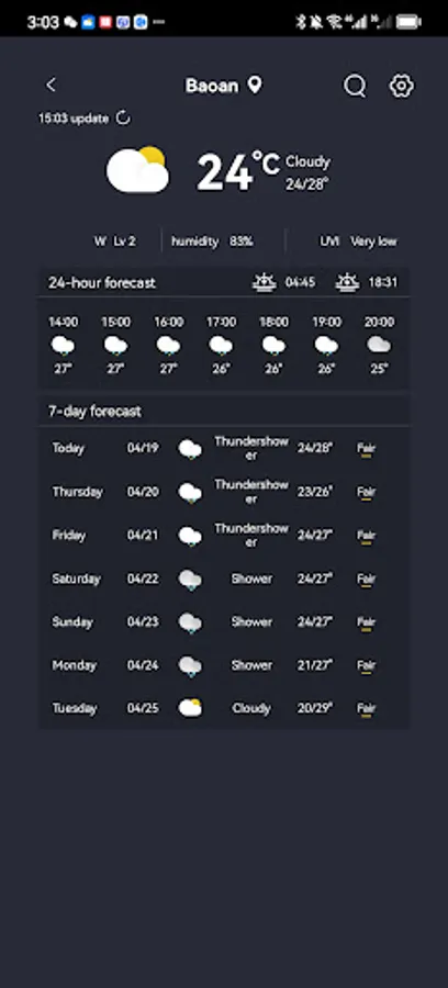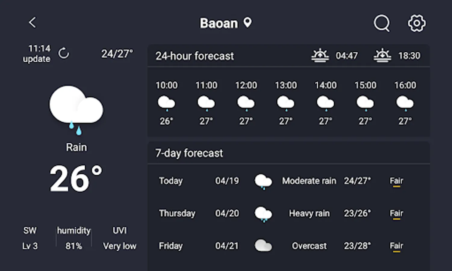 【 Hourly weather forecast 】 Weather changes within 24 hours, early prevention of excessive temperature difference between morning and evening