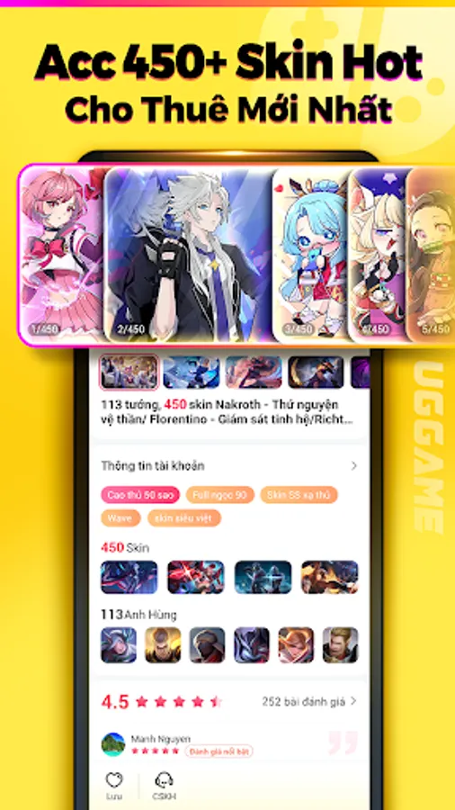 Rent cheap game accc, top level from super cool games, and rare skins like Guardian Dimension, Harley Qujn, Tulen, Raz Muay Tháj