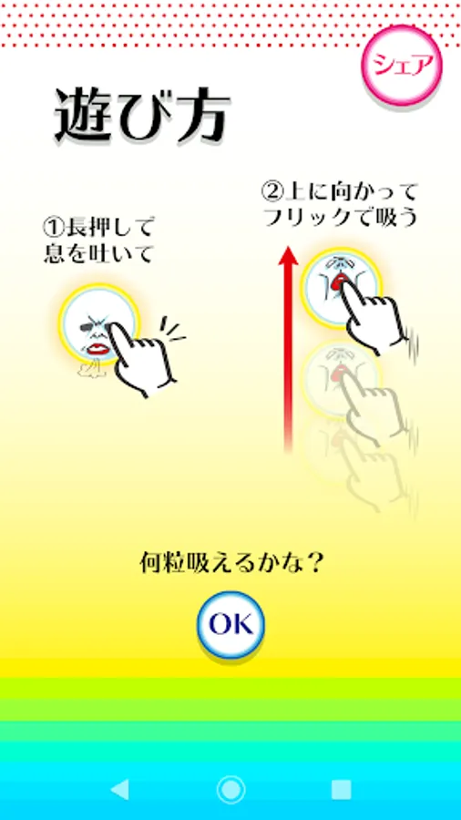 ①Long press the screen and exhale.
