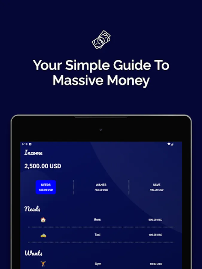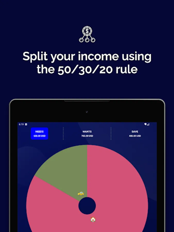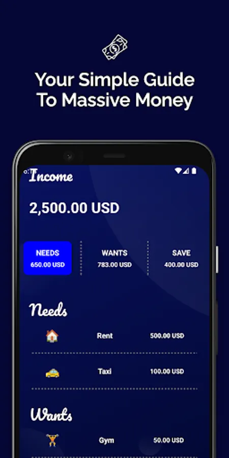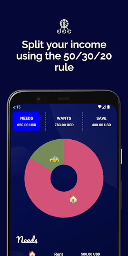 The app helps you to keep your needs at 50% of your total net income.