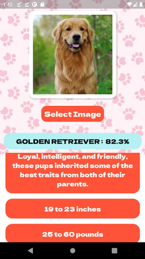 It specifies the breed of the dog by pictures using your device's image gallery.