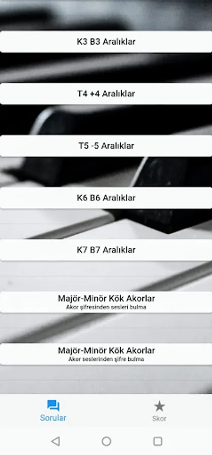 Intervals and chords, which form the basis of music, are painful subjects for many musicians to learn. The ability to make quick calculations and reach an error-free result develops by solving plenty of examples. The purpose of our application is to allow musicians to solve examples on intervals and chords.