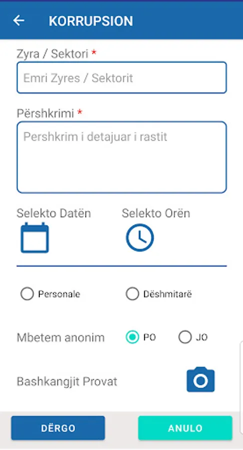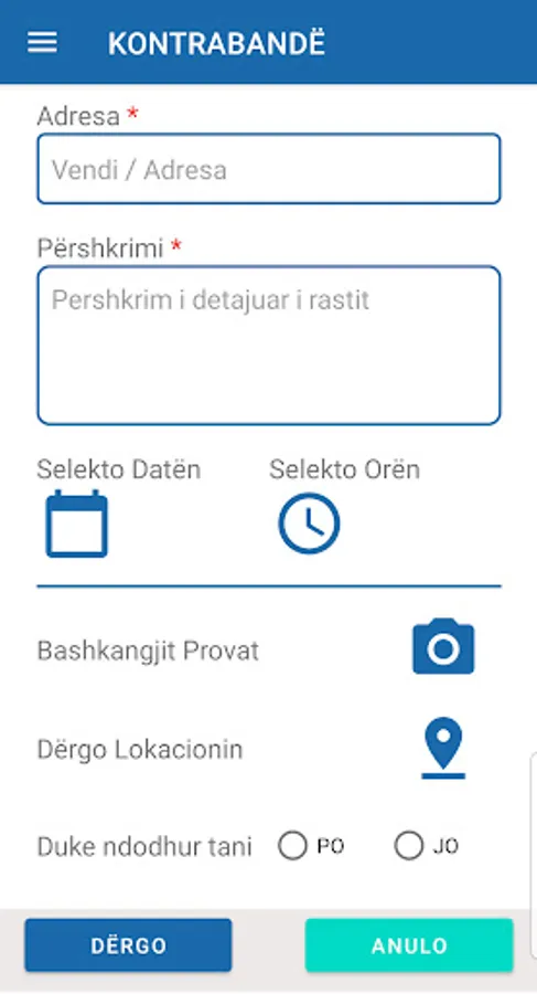 VËREJTJE: Aplikacioni të përdoret vetëm për raportimin e rasteve që kanë të bëjnë direkt me rastet e Doganës së Kosovës