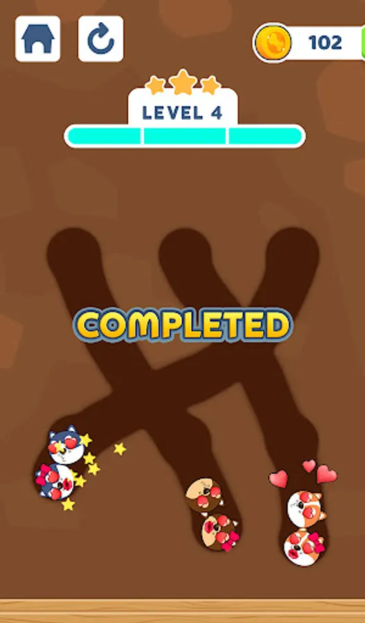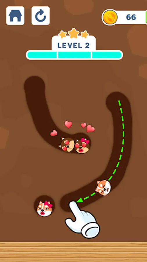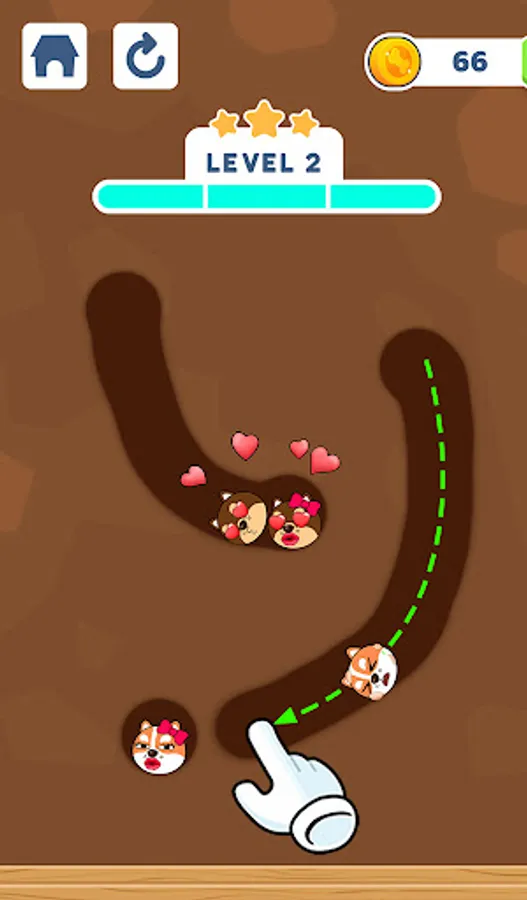 🐶 The rule is easy: Drag to draw lines or shapes to create a path and lead the dogs to their lovers. You'll fail if you accidentally match the wrong couples. Let your wisdom and imagination run free!