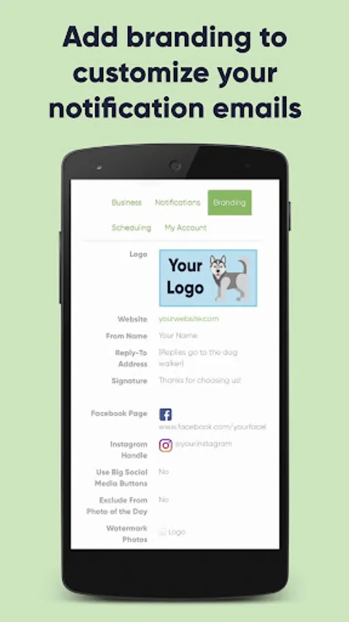 • Email notifications with your own logo and branding