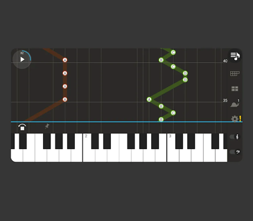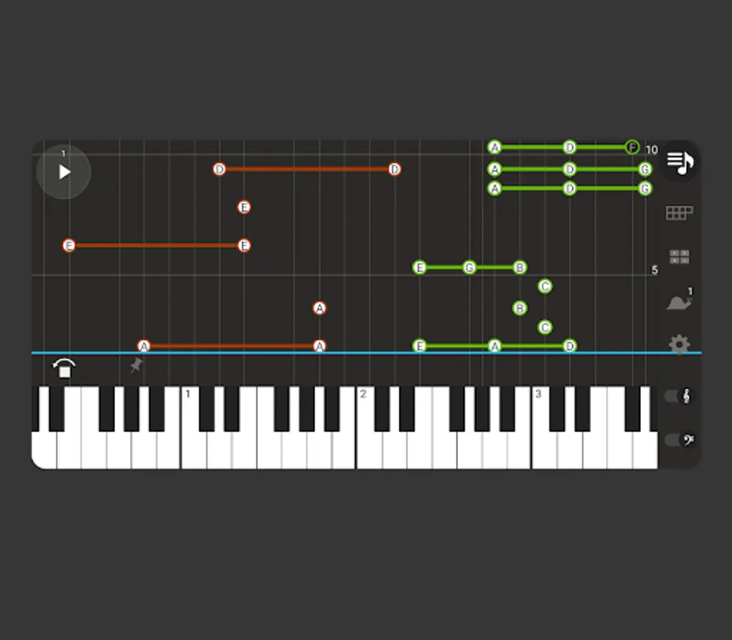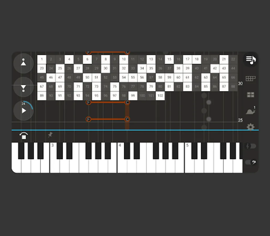 Sure you can play here, but there is too few space for real music practice so we recommend use Grand Pianizator as interactive tutorial, like video, but much more cozy. Because you can control timeline, select needed steps, rewind to them, set velocity.