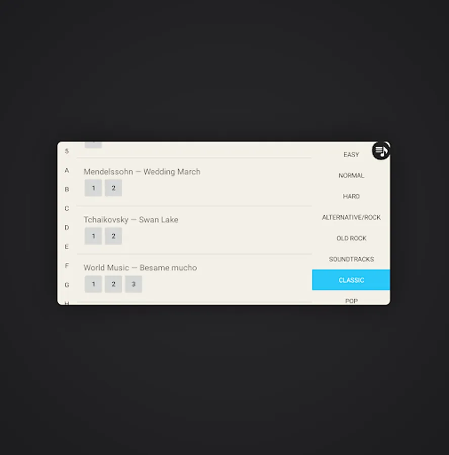 The method is very simple. The song is separated by steps. One step is one chord or note on a timeline. Every step is highlighted on piano. All you need is watch what you should press and play it by you piano or synthesizer.