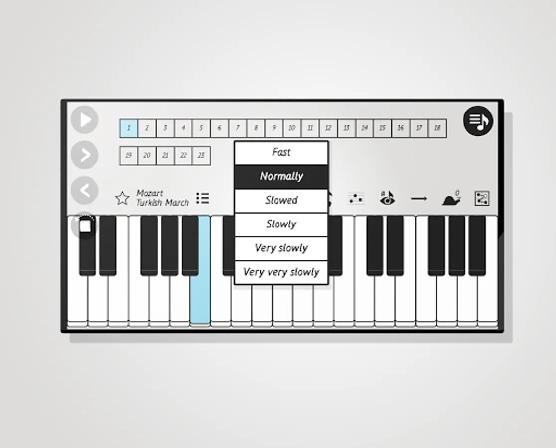 The simplest piano tutor. Shows how to play. There are short pieces of famous song used as lessons.
