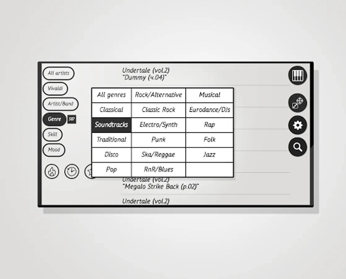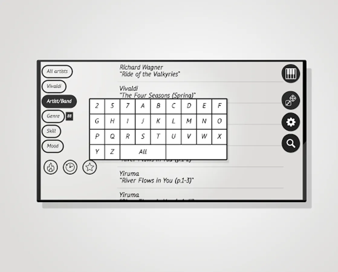 The main goal of the Pianizator isn't to teach the whole song performance (sometimes it's impossible using only piano). We aim to help absolute beginners quickly overcome its fear and save they of regular boring lessons (there are rock 'n'rolls and raves here). It's just watching and learning how to play a melody using only finger.