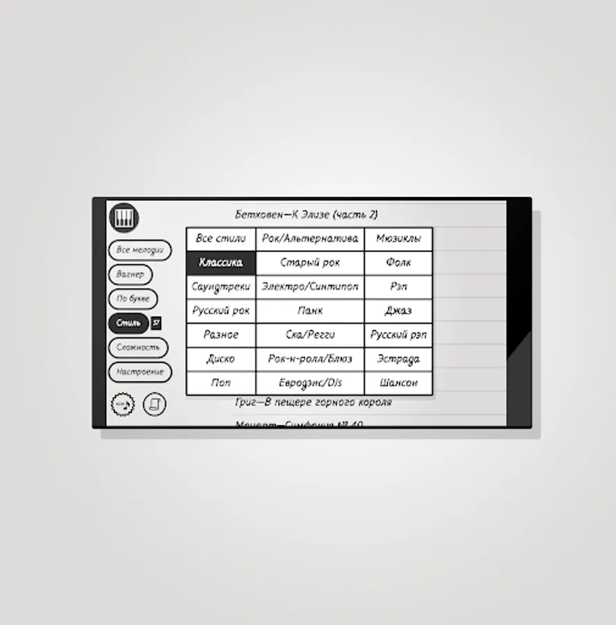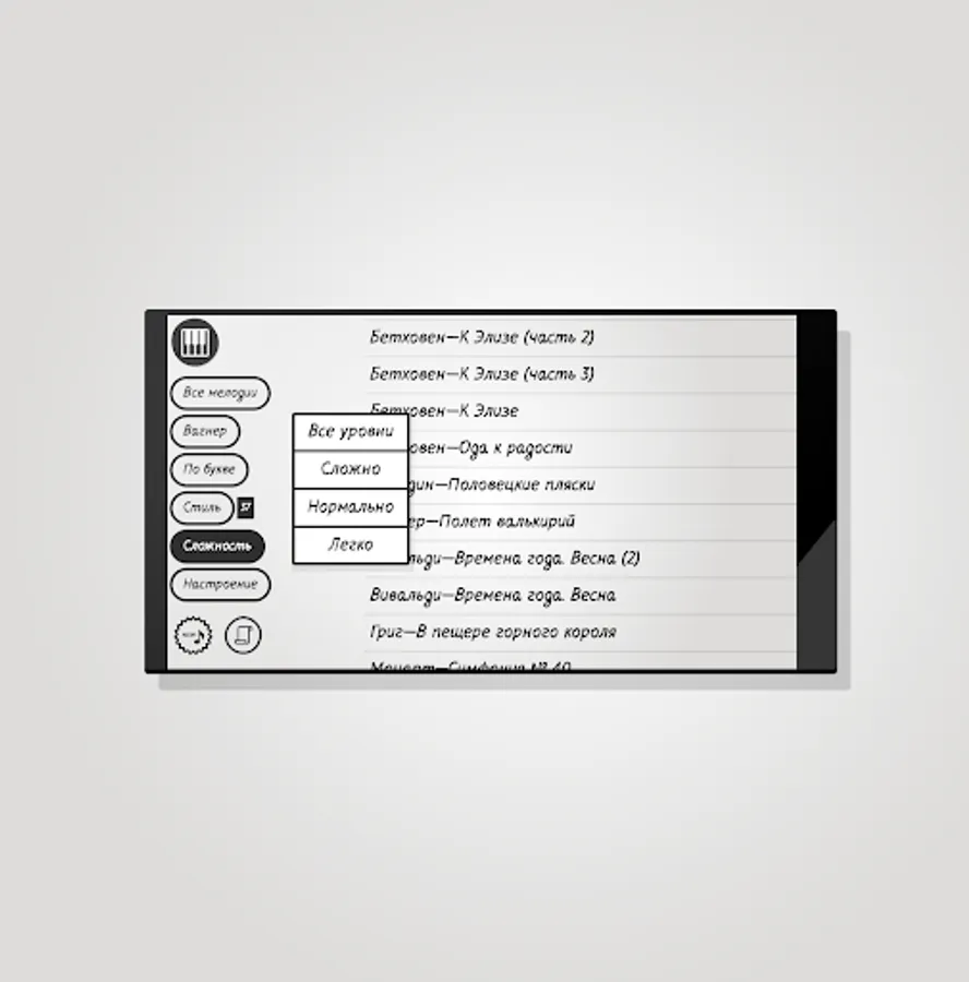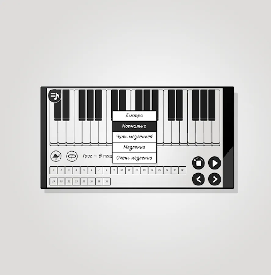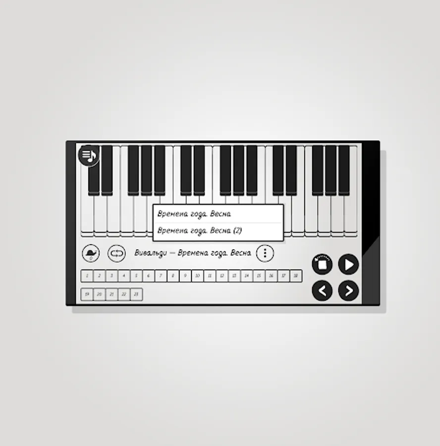 The good old “Pianizer” for those who, for some reason, could not use the new version with a new interface. Here everything is as it was. Simple fragments of famous tunes, one-finger step-by-step demonstration of the game.