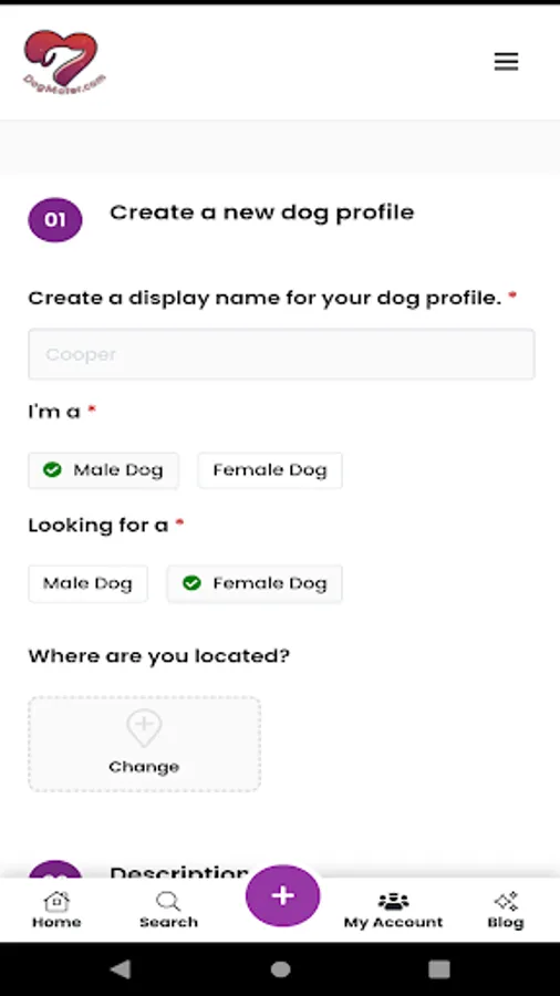 You can create a profile of your own dog by mentioning his/her personal details. Adding personalized thoughts for your pets, his/her habits, likes, good photos will make your pet's profile stand out and more visible to other fellow users.