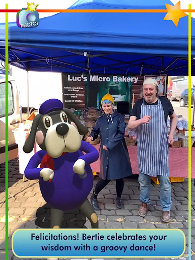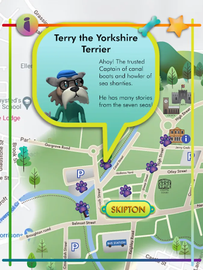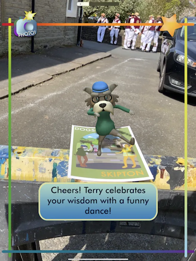 With the location based GPS trail in Skipton, Yorkshire Dales, You can meet with Dogs' Dales characters around town in Augmented Reality.