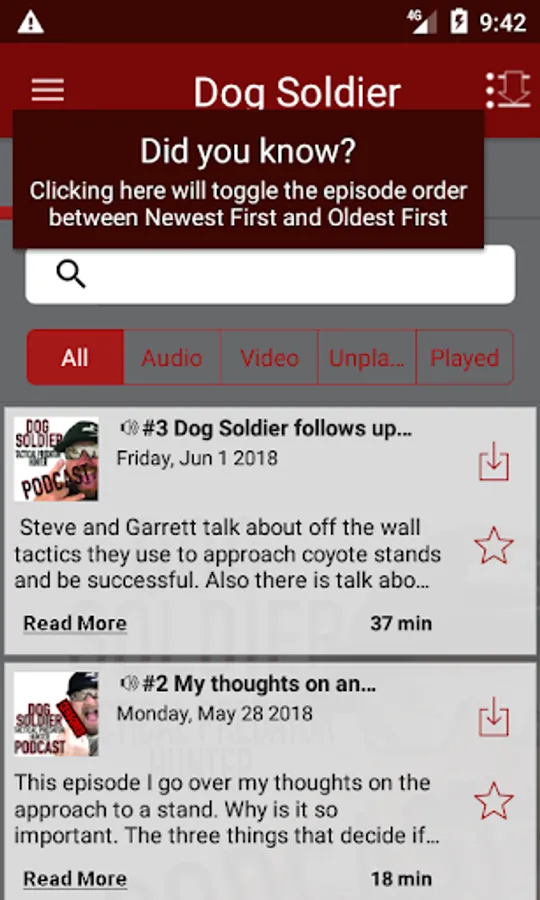 This is the most convenient way to access Dog Soldier "The Tactical Predator Hunter" on your phone. With this app you are always connected to the latest episodes and the show. You can also star your favorite episodes and save them to a list so you can easily enjoy them over and over! This app is complete access to Dog Soldier "The Tactical Predator Hunter" and if you're a fan of the show you won't want to be without it!