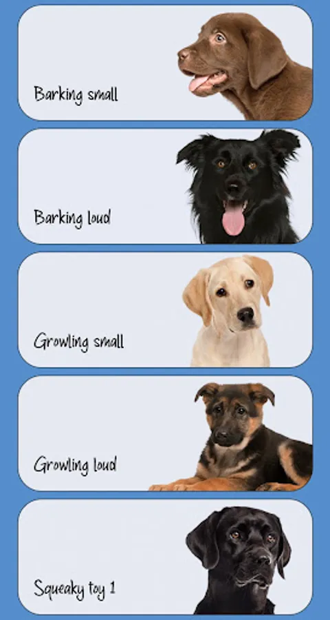 Turn your smartphone into man's best friend! Wake up every morning with a licking dog sound! This app is for all the dog lovers who adore these wonderful animals and the sounds they make – from barking, crying, singing, whining to howling. Dogs have their own language that allows them to communicate their emotional state and their intentions to others around them. Dog Sounds will let you play with your own pet ( cat or dog) – just play the sounds and watch their reactions.