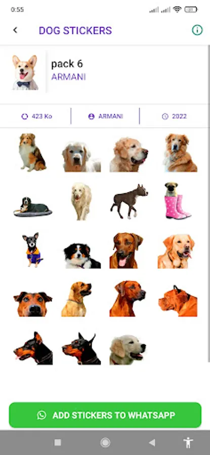 Utilisez cette application gratuite d'autocollants pour chiens WAStickerApps et ajoutez un nouvel ensemble de mèmes amusants pour chiens à utiliser dans des situations quotidiennes telles que des chiots mignons, des chiens amoureux ou en colère, etc. N'oubliez pas d'envoyer des autocollants chiots à vos proches