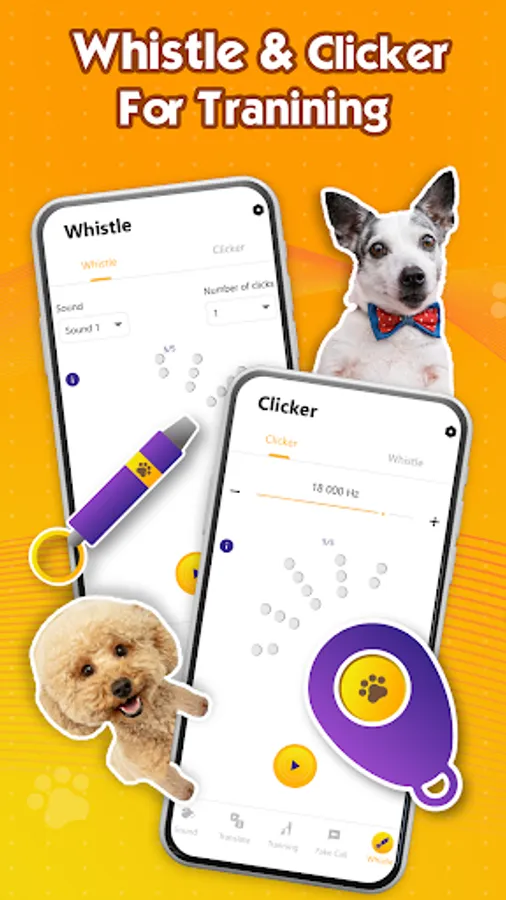 Dog Translator also has a dog training mode, allowing you to train your dogs at any time. The app's built-in whistle & clicker feature provides specific frequencies to teach different commands and tricks, making dog training fun and easy. Step in and explore their world, gain a deeper understanding of their needs and wants.