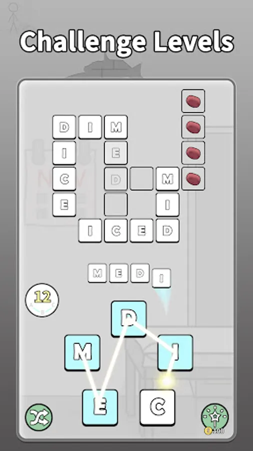 • Swipe the letters horizontally, vertically, diagonally, forwards or backwards to form a specific word.