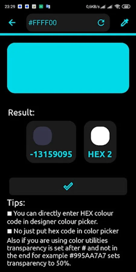 β Get result and use negative color code for writing schema eg "TextColor": -6381922, -16777216...