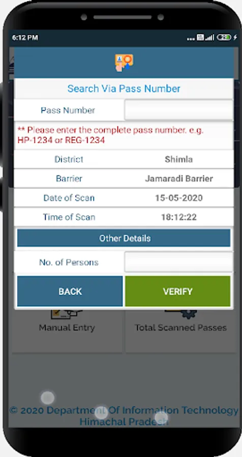 Himachal ePass Verification mobile app has been developed and provided to police persons at inter-state barriers to verify the validity of ePasses by scanning QR codes on ePasses issued by DCs. The data immediately syncs with the server and police personnel are not required to maintain manual records. This app ensures that data is captured quickly and there are no long queues at the barriers. Data of people entering/ exiting Himachal becomes available to the concerned authorities on ePass portal.