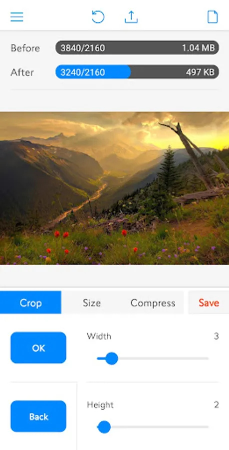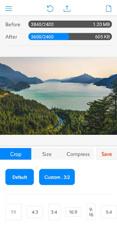 Photo Resize provides a crop function, use the crop function to remove unwanted parts of the image, and choose between the many aspect ratios available to better adjust the photo.