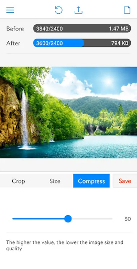 Photo Resize uses intelligent image compression technology to reduce the file size of photos, difference in image quality is almost invisible, but the file size difference is huge.