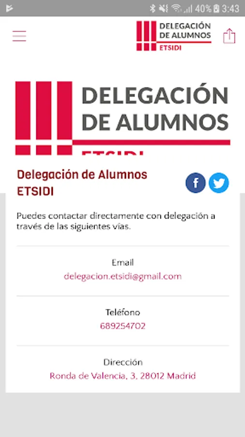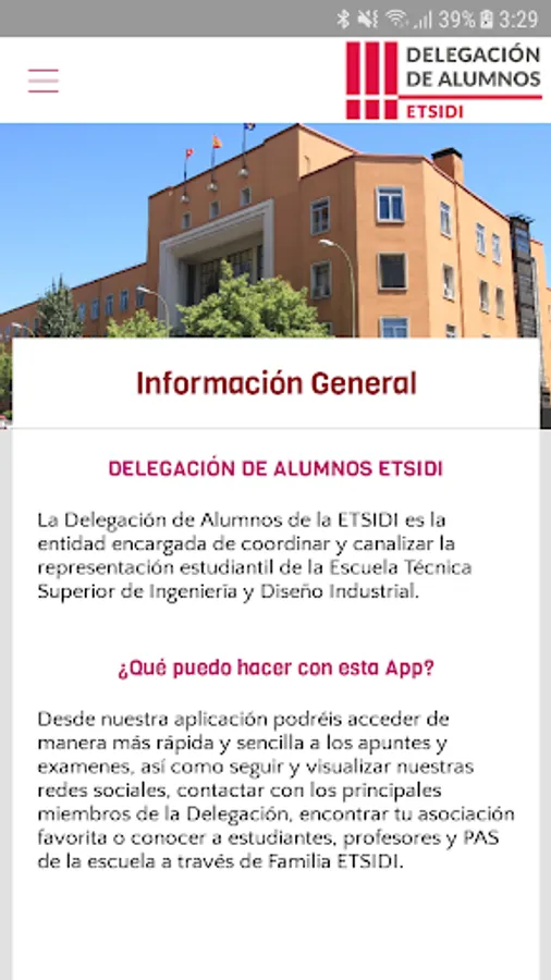 Since the mobile application of the Student ETSIDI, you can access more quickly and easily notes and exams way and to follow and visualize our social networks, contact the principal members of the delegation, find your favorite association or meet students, teachers and school PAS through Family ETSIDI.