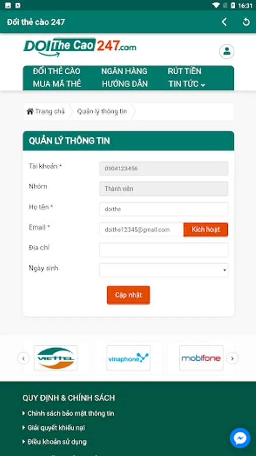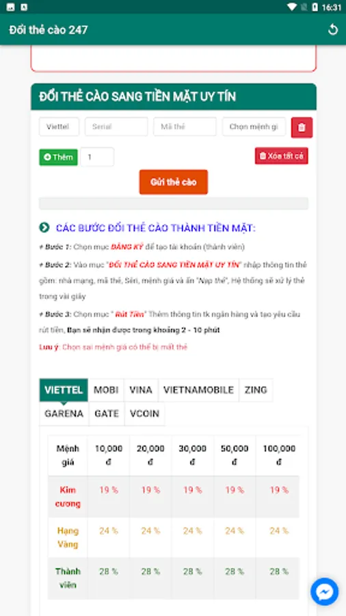 Redeem Scratch Card 247 - The service of exchanging scratch cards into cash at a low discount, changing scratch cards to garena, zing, gate, vcoin cards. Convert scratch card to momo wallet - super fast atm card in 5 seconds.