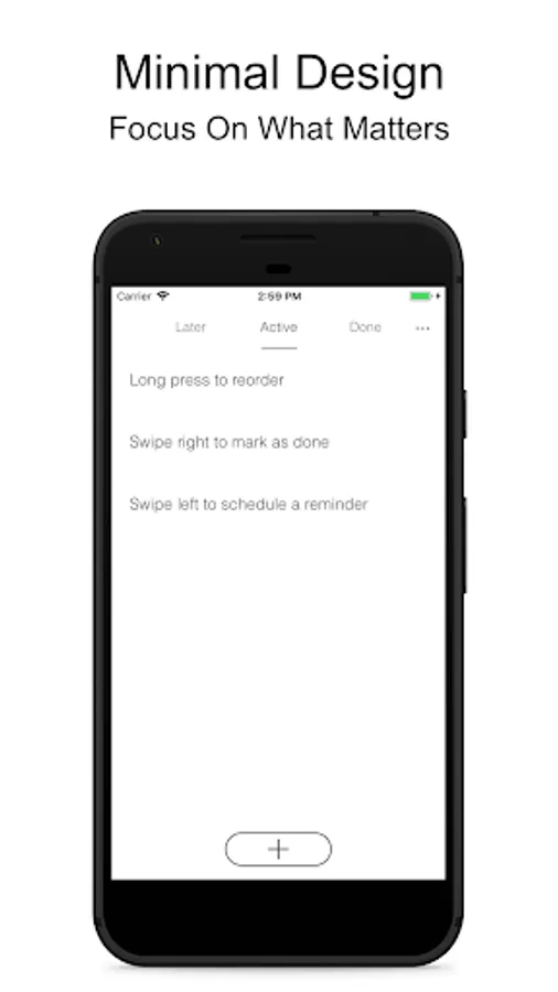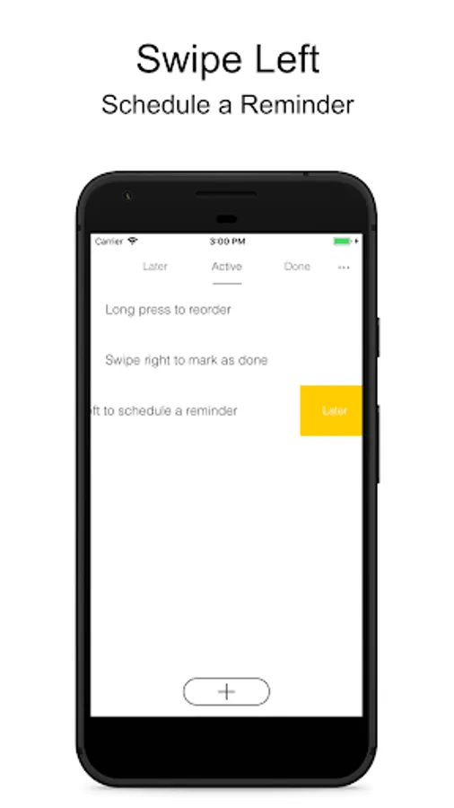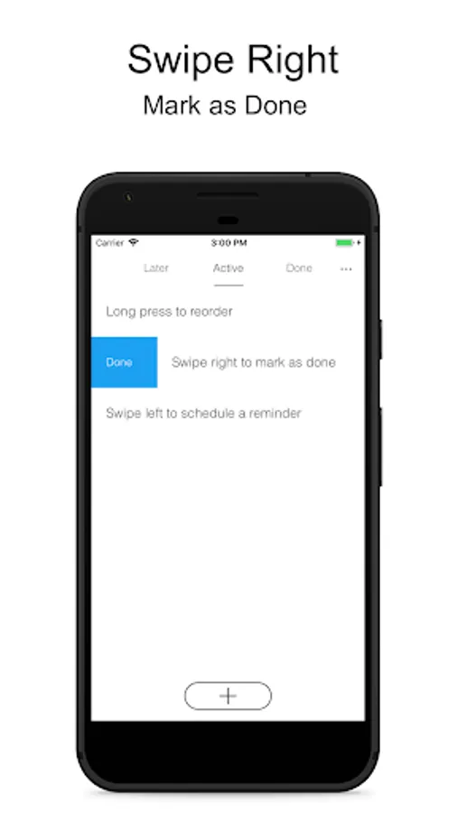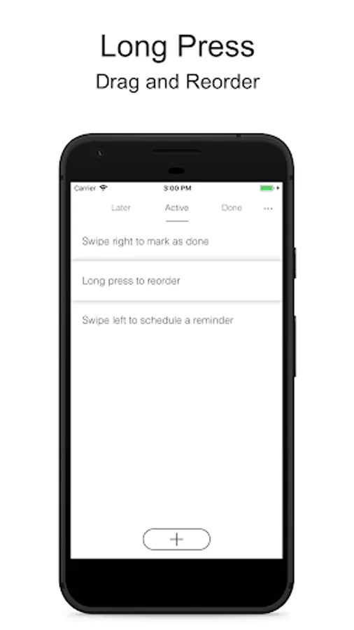 【Intuitive gestures】Swipe left to schedule a reminder, swipe right to mark as done, long press to reorder