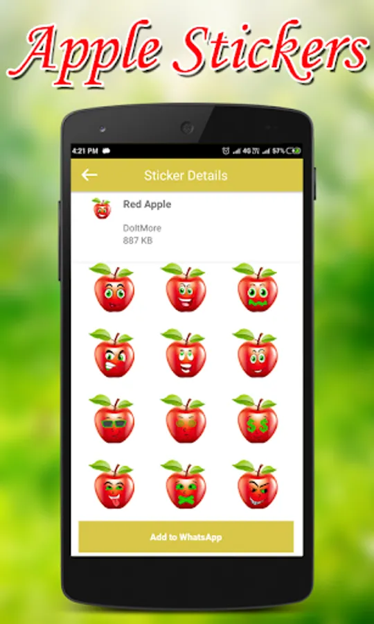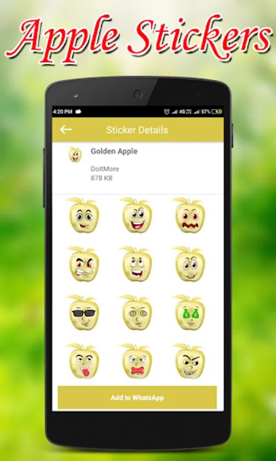 Add Golden Apple Stickers from WAStickerApps application and send stickers to express your feelings to your friends and family.