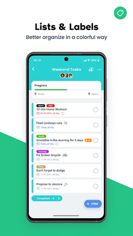 - Organize your tasks in personal lists and give them the colors to find them quicker