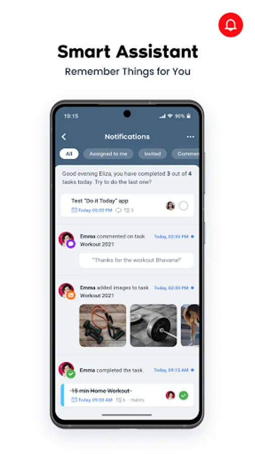 - Collaborate on tasks with attachments like photos or files, comment on progress or assign a task at a glance to someone else