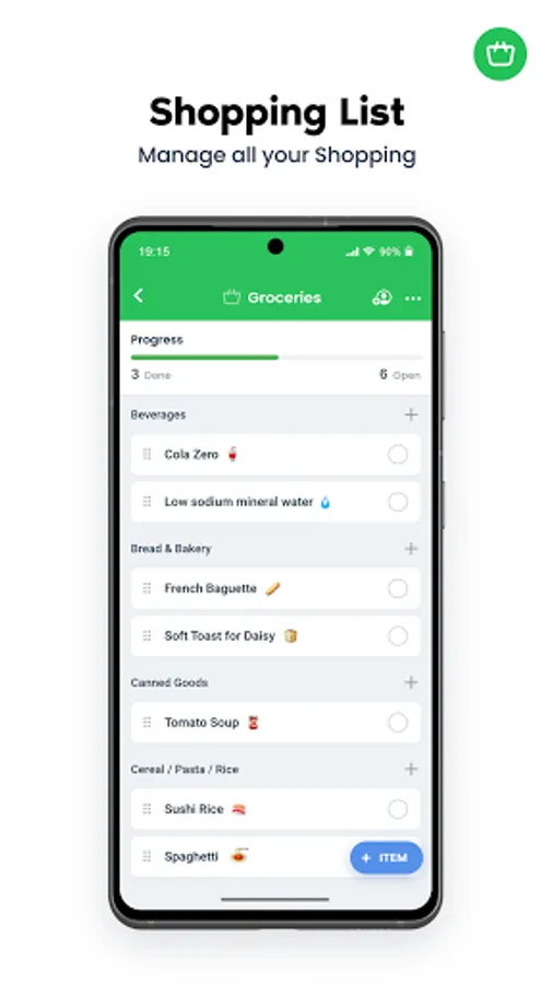 - Organize all your shopping items in convenient shopping lists with pre-defined categories