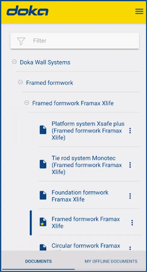 Navigate through the formwork systems to find the document you need. You can view the document or also download it so that you have it at hand, if there is no LAN or WLAN.