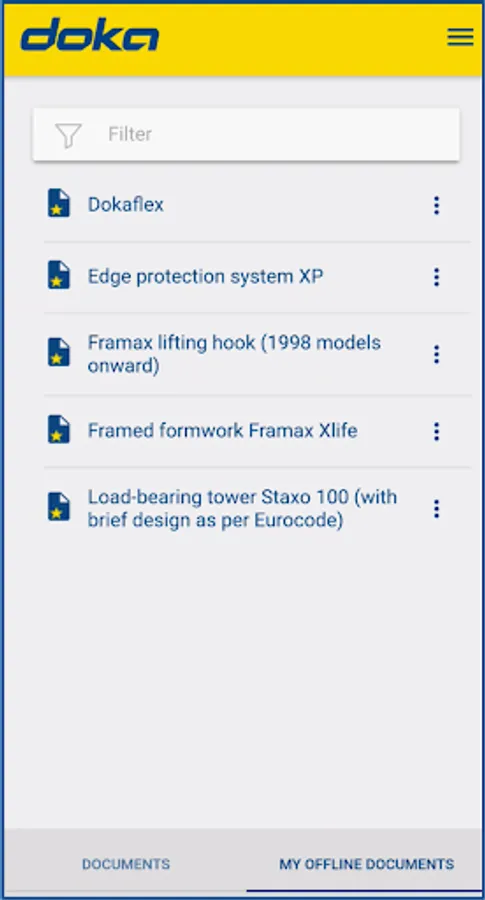 Under the menu button "My offline documents" you can see an overview of your favourite (offline) documents.