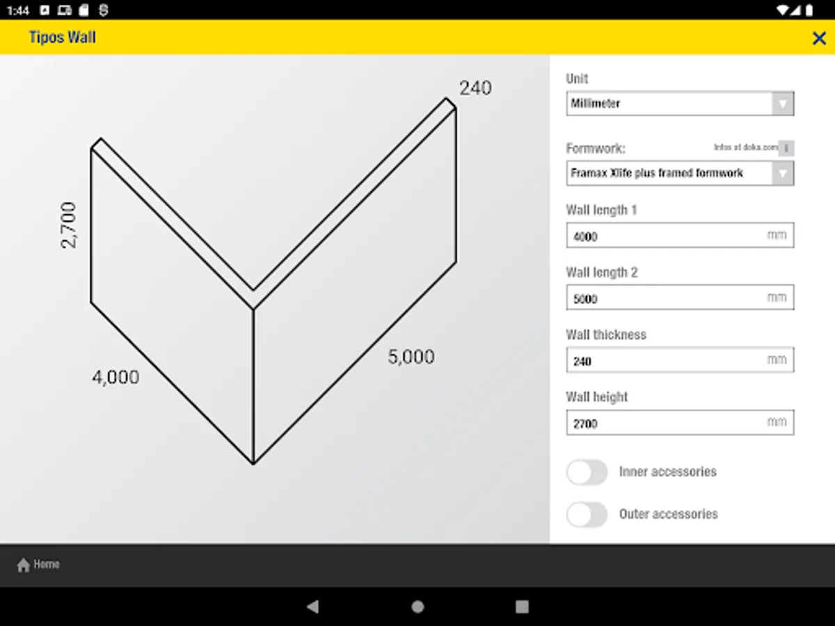 Wall" and "Material Determination Floor" planning systems you can form in simple components in no time and quickly get an overview of how to best utilise Doka formwork systems. Layout and planning views of your Doka formwork along with the entire piece list and design values appear on your display in little more than the blink of an eye.