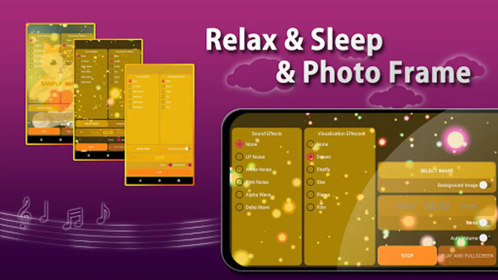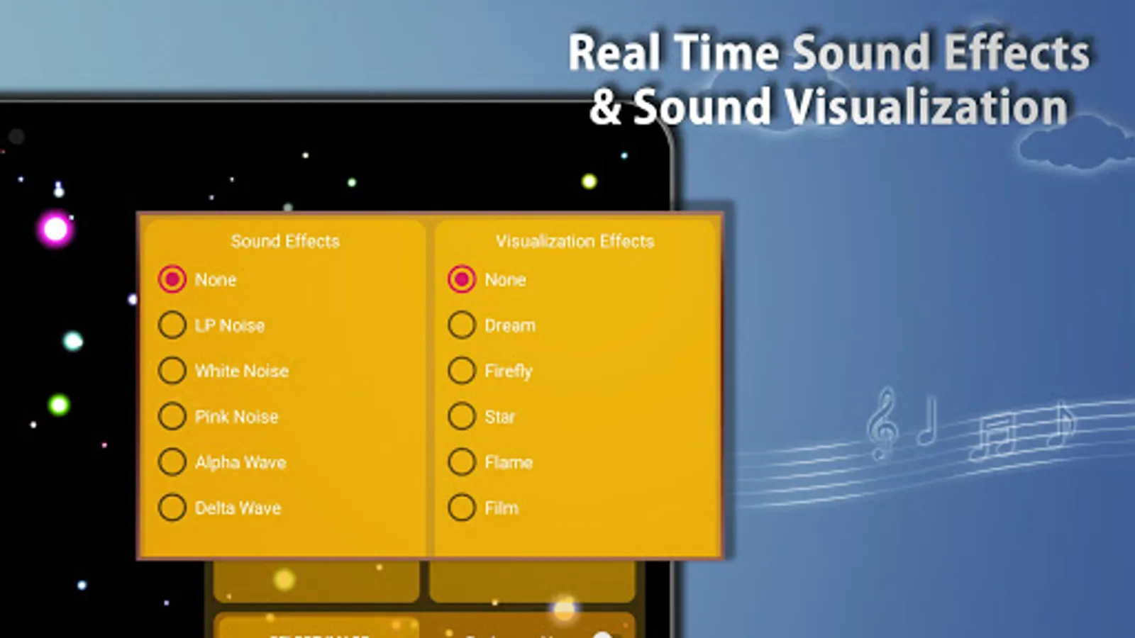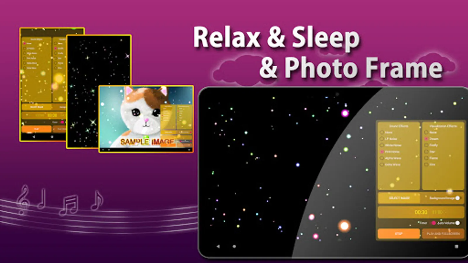 It supports various noise effects, visual effects that respond to sounds, and digital photo frames.