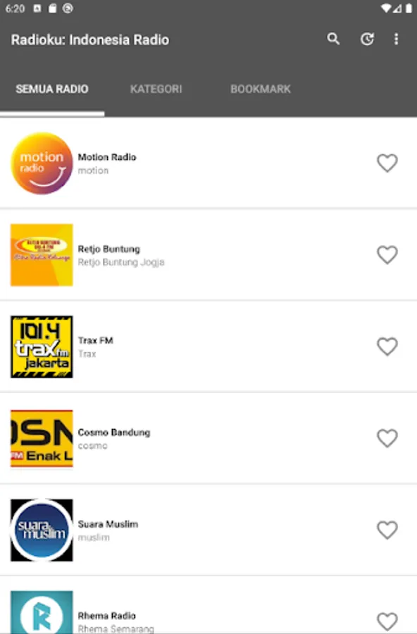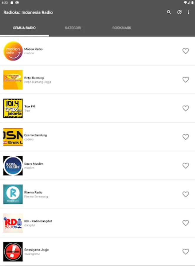 Indonesian radio radio online with categories and favorites, a list of radio stations in Indonesia that is completed regularly. Let us know if your favorite radio doesn't exist yet.