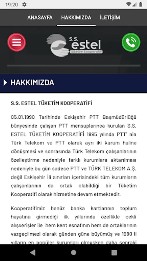 S. S. The Estel Consumption Cooperative started its name in the city of Eskişehir in 1990 with the authorization given by the relevant regulation and started its activities immediately. For many years, great services have been offered to partners with small opportunities under difficult conditions.