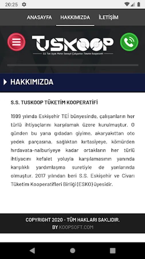 It was established in Eskişehir TEI in 1999 to meet all kinds of needs of employees. Since then, it has been with them by mutual assistance as well as meeting all the needs of the partners, from food to clothing, from fuel to auto spare parts, from health to stationery, from coal to hardware and hardware. Since 2017, S.S. He is a member of Eskişehir and Vicinity Consumption Cooperatives Union (ESKO).