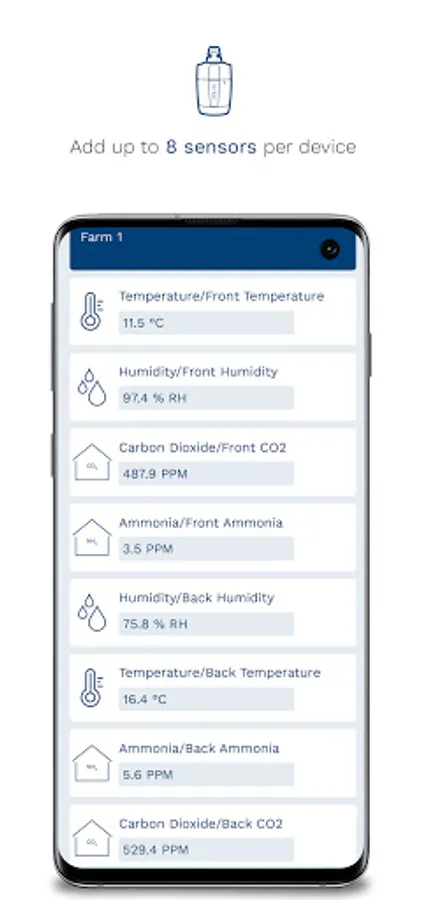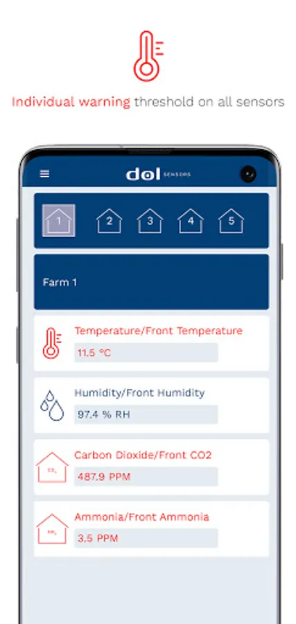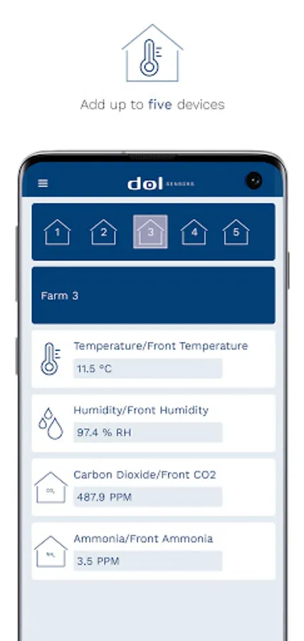 As Pro user you may pair five iDOL 63 Cloud Gateways and connect up to 8 DOL sensors to each iDOL 63. Select between temperature, humidity, carbon dioxide and ammonia.