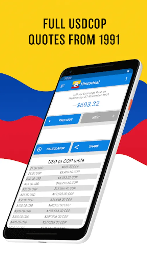 Find out the exact COP/USD and USD/COP exchange rates. Use the ready-made exchange rate tables for round sums (for example, $100). The application enhances your personal finance management and helps you trade in financial markets providing you with the current quote data.