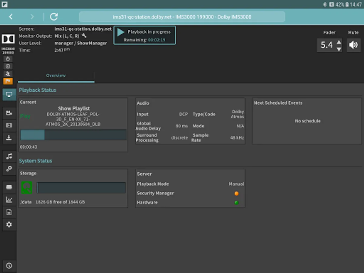 Cinema Server Control lets you use your Android tablet to give you wireless access and control of your Dolby Integrated Media Server IMS3000.