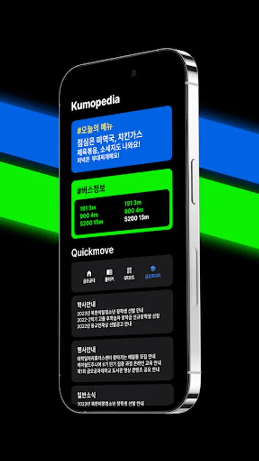 The left side shows real-time bus information when going to school, and the right side shows real-time bus information when going home!