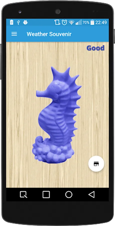 Weather souvenir is an app that works like the famous statues or weather souvenirs that you can buy in the coast cities.