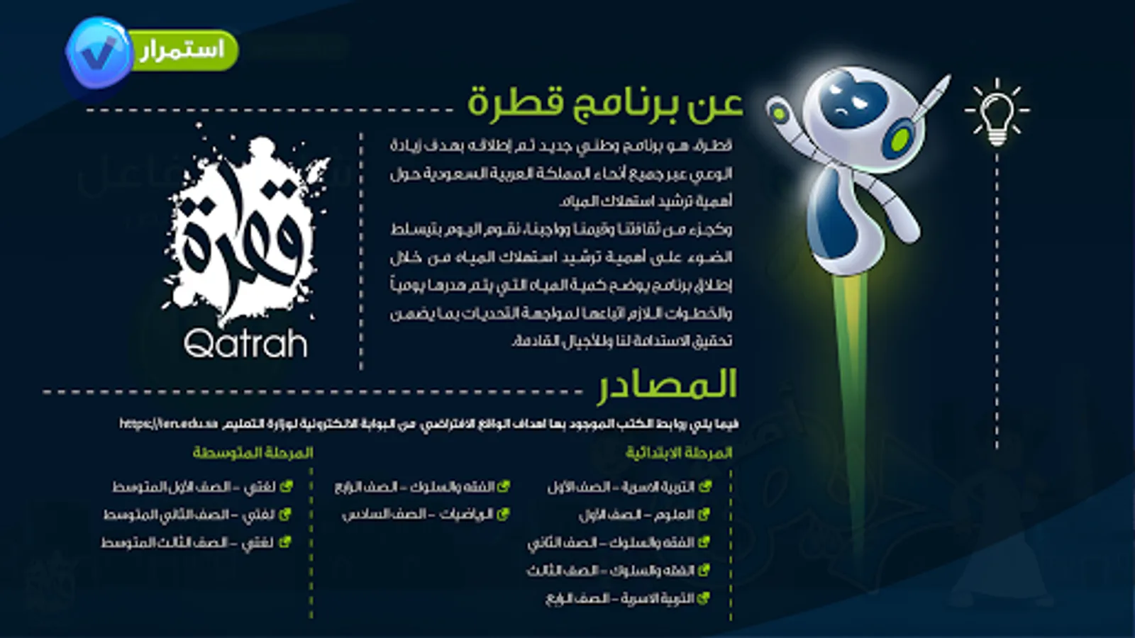 This application is one of Qatrah solutions to helps you learn facts about water consumption and indirectly makes you save water by spreading awareness of how water is spent on various things.