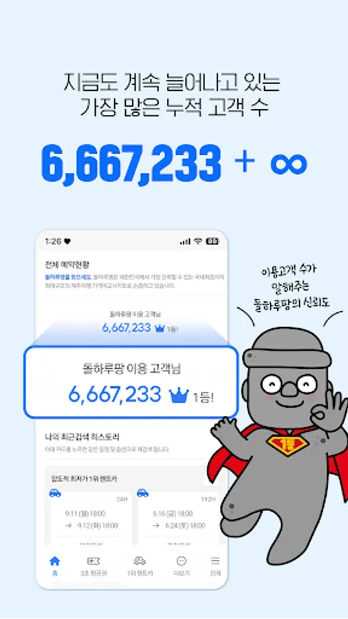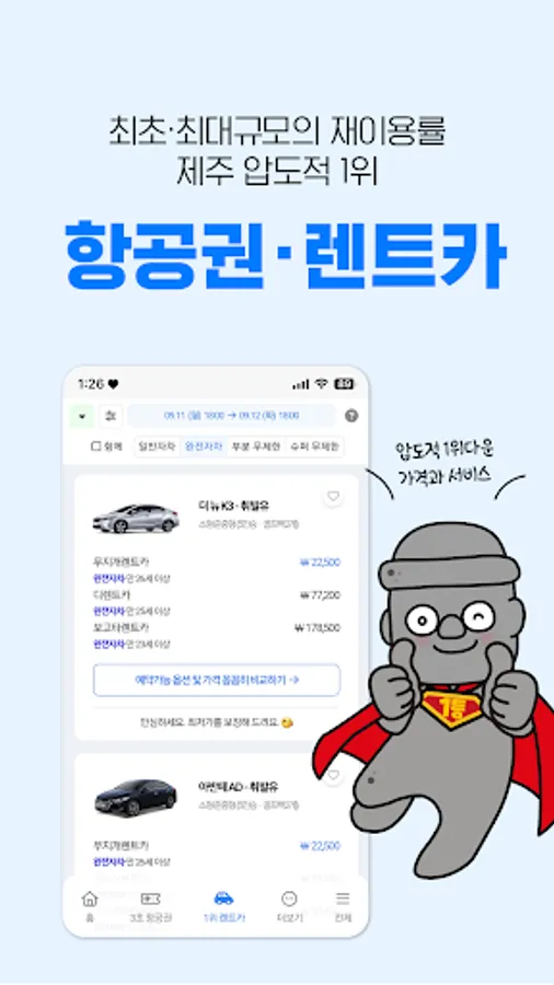 It is a Jeju Island rental car price comparison platform with the highest reuse rate that allows real-time price comparison of over 20,000 rental cars from 95 companies at the lowest price.